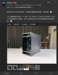 日前,数码博主“科技小辛”晒出了小米迷你主机邀请函,其中包括一台铝合金机箱,开关键采用机械轴设计,机箱铭牌上印有“Win+M”标识,据悉,该组合键在Windows系统中代表窗口最小化。