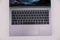 C面的键盘采用了三档白色背光调节,1.5mm的键程回弹有力,昏暗环境下也可以打字输入。右上角的开关键集成了指纹识别,使用更加安全。下方居中是大面积触摸板,手感丝滑。