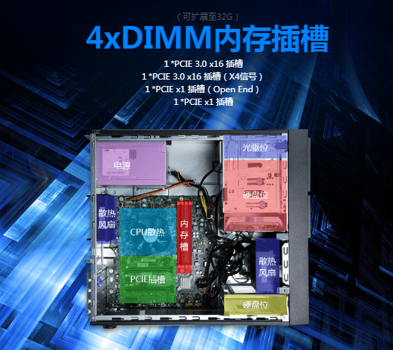 | 扩展插槽 | 1 个PCIe 3.0 x16/x16;1 个PCIe 3.0 x16/x4;1 个PCIe 3.0 x1 插槽 (Open End);1 个 PCIe 3.0 x1 插槽 |