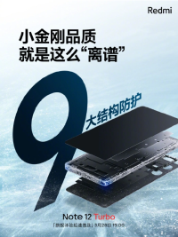IT采购网3月24日消息,Redmi官方微博持续对Note 12Turbo新机进行预热。据预热内容显示,新机将采用九大旗舰级结构防护设计,包括四角加固、后盖硬化、康宁大猩猩玻璃主板贴装补强钢片、关键芯片硅胶垫支撑等措施,通过了4项“超离谱”品质测试,软件故障率仅为0.005%。此外,RedmiNote 12 Turbo还宣布采用超细四窄边+无屏幕支架的直屏设计,支持12bit亿色、100%P3广色域、1920HzPWM调光,并通过了SGS低蓝光认证。新机去除了塑料支架,下巴仅2.22mm,屏占比达93.4%。