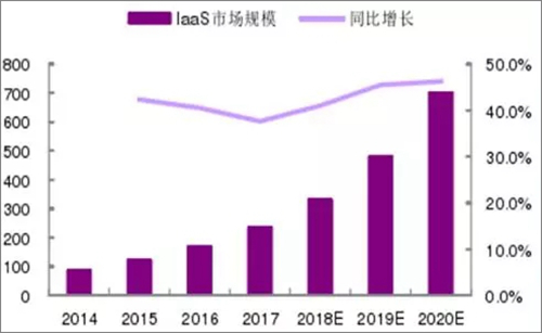 图表:我国IaaS市场规模(单位:亿元),数据来源:中研普华产业研究院