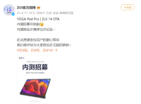 IT采购网4月17日消息,ZUI官方微博今日发文宣布,联想YOGA Pad Pro平板电脑将开启ZUI 14OTA内测招募,并表示正式版本也将尽快跟进。