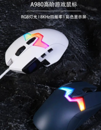 设计方面,A980鼠标引人注目。鼠标配备了0.85寸TFT彩色显示屏,可以显示静态图片和动态图片,色彩准确、画质细腻清晰。用户可以在驱动里更换动画,个性化定制鼠标的外观。此外,鼠标还支持RGB灯效,使用户可以根据个人喜好调整鼠标的光效,增加了产品的可玩性。