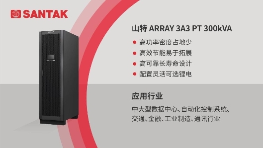 ARRAY 3A3 PT 300K UPS 融合了独特的三电平拓扑技术和多项专利技术,利用在线双变换模式和 ECO 模式的双重优势,既保障了系统的稳定可靠,又兼顾了节能高效。