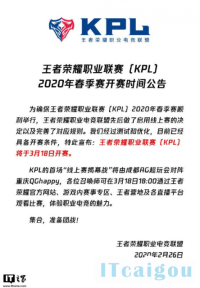 2月26日消息 王者荣耀职业电竞联盟今天发布公告称,为确保王者荣耀职业联赛(KPL)2020年春季赛顺利举行,王者荣耀职业电竞联盟启用线上赛制,目前已完善了对应规则,定于3月18日开赛。