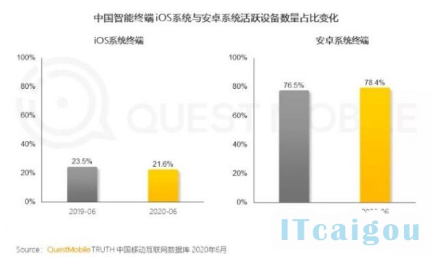 8月4日消息,QuestMobile数据显示,截止到2020年6月,国内智能终端的市场格局基本定型:首先是安卓与iOS八二开,苹果手机占比下降至21.6%;其次是国产四大格局稳定,华为已经突破到了26.3%,OPPO、vivo、小米三家分别19%、16.6%、9%,同比变化微弱,三星略有回升至3.4%,长尾份额从7.8%进一步被蚕食到4.1%。