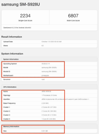 欧洲版的Galaxy S24 Ultra型号为“SM-S928B”。GeekBench的信息显示,它采用了1+3+2+2的八核设计,搭载Adreno750 GPU: