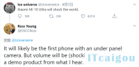 屏下摄像头的概念早已不是第一次传出,此前包括三星、华为、小米在内的多家手机厂商都公布了旗下屏下摄像头得到解决方案,但直到现在进展都比较缓慢。而近日根据业内人士@Ross Young最新发布的爆料称,全新的xiaomi Mi Ultra(小米10至尊纪念版)除了双曲面柔性屏外,还将提供有屏下摄像头版本。并且@Ross Young指出,该机可能是第一款采用屏下摄像头技术的手机,当然,目前应该是演示版本,而不会是最终量产版本,但至少是取得了大的进展。