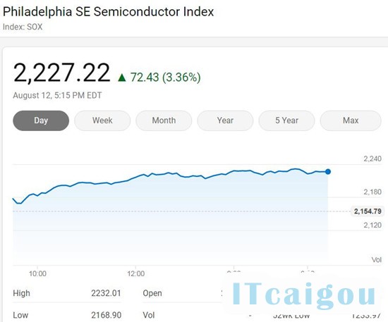 8月13日消息,据国外媒体报道,美国三大股指周三全线上涨,费城半导体指数涨3.36%创新高。