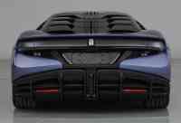 侧面观察,该车同样注重了大量空气动力学设计,车身下部还配备了引人注目的风刀,造型相当夸张。这辆车还特别配置了碳纤维大尾翼,搭配下方的碳纤维扩散器,为人们带来了一种超级跑车的视觉冲击。