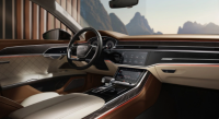 内饰方面,新车标配豪华四座行政按摩座椅,采用哈瓦那棕与汉白玉白的双色搭配,营造出典雅而现代的氛围。在D柱三角窗、迎宾踏板、照地灯、头枕等位置,消费者还可以进行个性化专属定制,展现自己的独特品味。此外,新车还配备了奥迪虚拟座舱增强版、Bang& Olufsen奢享3D音响系统、MIB3信息娱乐系统等高端配置,为驾乘者带来极致的舒适和娱乐体验。