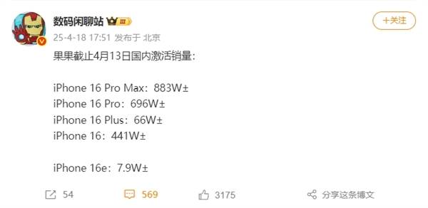 近期,知名数码博主“数码闲聊站”曝光了苹果截至4月13日在国内市场的手机激活销量数据,这一数据或许揭示了苹果决定调整产品线的背后原因。