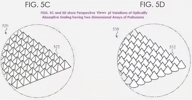 根据专利描述,这种光栅不仅结构独特,还可能在光栅表面覆盖一层光学吸收涂层,以进一步提升对杂散光的吸收效果。该技术的发明人包括相机工程师Yoshikazu Shinohara、光学工程师Chenglin Zhang和曾任职于苹果的Andrej Halabica(现任meta员工),以及光学工程经理Ligang Wang。
