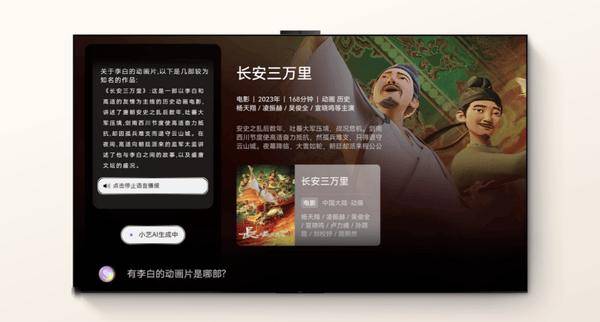 鸿蒙AI的加入,让华为Vision智慧屏 5成为了“巨幕手机”的新标杆。与市场上众多浅尝辄止的AI电视不同,华为Vision智慧屏 5深度整合了小艺大模型,将鸿蒙AI真正融入电视系统底层,使AI成为电视使用的核心动力。这不仅提升了观影体验,更带来了丰富有趣的交互方式。AI搜片功能凭借小艺大模型在自然语义理解和数据索引方面的强大实力,用户只需通过演员、角色、台词等关键信息,即可快速找到心仪的影片,甚至直达精彩片段。例如,用户只需说出“小艺小艺,找李白和高适的动画片”,智慧屏便能迅速响应,播放《长安三万里》。其强大的上下文理解能力,让对话更加流畅自然,无论是追剧时的典故询问,还是生活百科的解答,都能轻松应对,仿佛拥有了“硅基生命”。