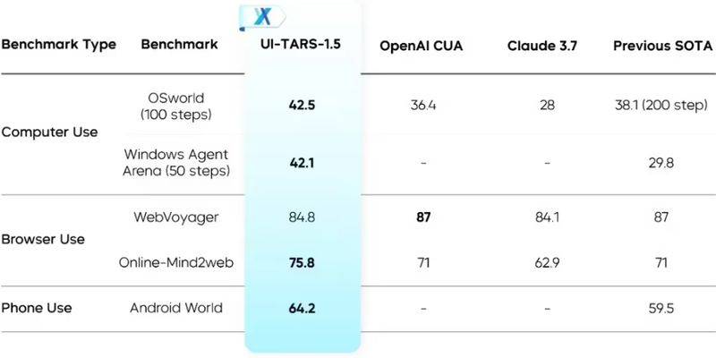 UI-TARS-1.5还实现了统一动作建模,通过构建跨平台的标准动作空间,并结合真实轨迹学习,智能体能够更加精准地控制动作的执行,提高了动作的可控性和执行精度。最后,该智能体采用了可自我演化的训练范式,通过自动化的交互轨迹采集和反思式训练机制,模型能够不断从错误中学习,持续改进自身,以适应复杂多变的任务环境。