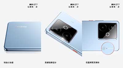 从外观设计上看,真我GT7采用了简约而不失时尚的设计风格。该机型提供了三款配色方案,分别是蓝色“石墨烯·冰”、白色“石墨烯·雪”以及黑色“石墨烯·夜”。机身采用了冰感石墨烯和航空级高韧玻纤材质,不仅散热性能出众,而且更加轻薄耐摔,被形象地称为“科技小冰皮”。其中,“石墨烯·冰”和“石墨烯·夜”两款配色在镜头Deco处和电源键上采用了撞色设计,并搭配石墨烯铭文角标,视觉效果独特。