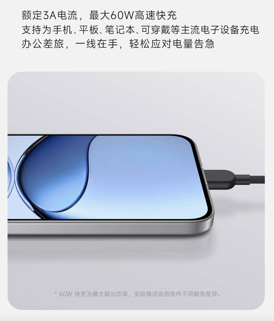 为了满足不同用户的充电需求,小米在设计这款数据线时充分考虑了兼容性问题。无论是最新的智能手机,还是平板、笔记本等电子设备,只要支持USB-C接口和相应的快速充电协议,都可以通过这款数据线实现高效充电。这对于经常需要为多种设备充电的用户来说,无疑是一个极大的便利。