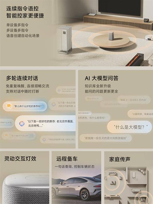 然而,在功能性方面,小米智能音箱却有了显著提升。它支持AI大模型问答功能,无论用户提出何种复杂问题,都能凭借强大的AI技术,迅速给出准确且详尽的回答,仿佛成为用户生活中的智慧伴侣。