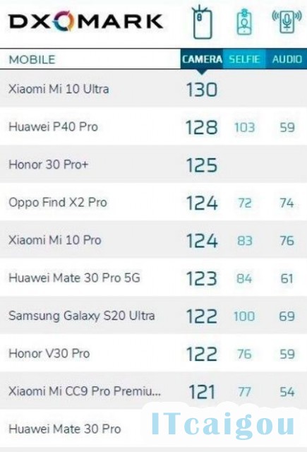 据悉,目前,在DXOMARK手机相机排行榜中,小米10 Ultra排在第一名,随后是华为P40 Pro、荣耀30 Pro+、OPPO Find X2 Pro、小米10 Pro、华为Mate30 Pro、三星Galaxy S20 Ultra、荣耀V30 Pro、小米CC9 Pro以及华为Mate30 Pro。