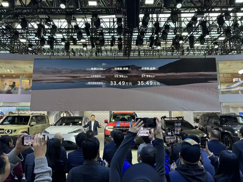 作为一款专为越野爱好者打造的特别版车型,纵横G700环塔版在外观设计上延续了现款车型的硬派风格,经典的方盒子造型搭配矩形头灯组,分体式前后包围与大尺寸轮眉设计,赋予整车强烈的越野辨识度。C字形日间行车灯与纵置尾灯的组合,则在硬朗气质中融入科技元素。为凸显竞技属性,新车特别采用与环塔拉力赛车同款的专属车身拉花,并配备黑熊AT越野轮胎与锻造防脱圈轮毂,既满足合法上路需求,又省去后期改装成本。