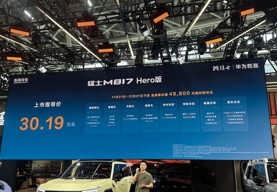 在大型硬派越野SUV市场,一款新车型的登场引发了广泛关注——猛士M817 Hero版以30.19万元的售价正式进入市场,将这一细分领域的价格门槛拉至30万元区间。作为猛士M817的衍生车型,新车在延续家族硬派基因的同时,针对实用性进行了深度优化,为追求全场景出行的用户提供了全新选择。