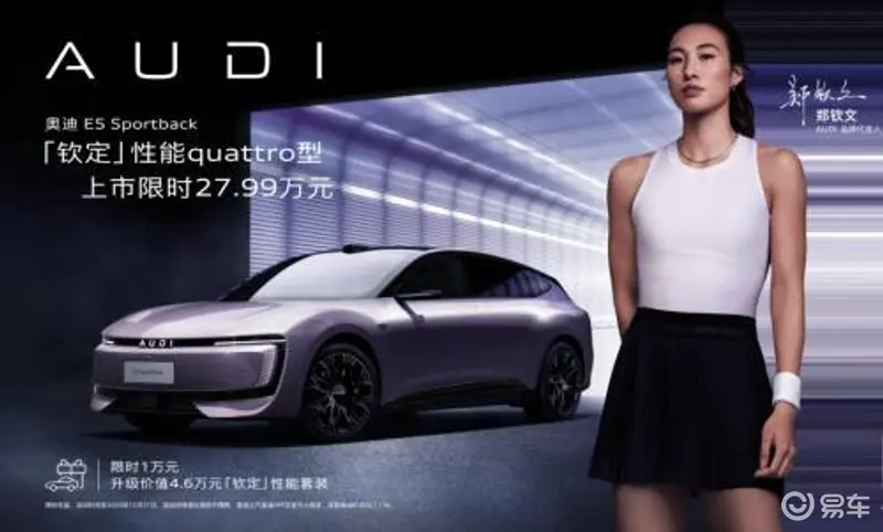 奥迪E5 Sportback特别性能quattro版的登场,无疑是品牌对市场需求的精准回应。这款新车在原有先锋quattro版的基础上,进行了全方位的性能与豪华配置升级。标配的20英寸轮毂,搭配前后不同规格的轮胎设计,后轮胎宽度达到285毫米,显著提升了车辆在过弯和高速行驶时的稳定性与接地面积。在舒适性配置方面,前排座椅按摩、后排座椅加热、隐私玻璃以及BOSE音响等高频使用功能均升级为标配,使新车在性能与豪华感之间找到了完美的平衡点。其限时售价定为27.99万元,无疑为消费者提供了更具吸引力的选择。