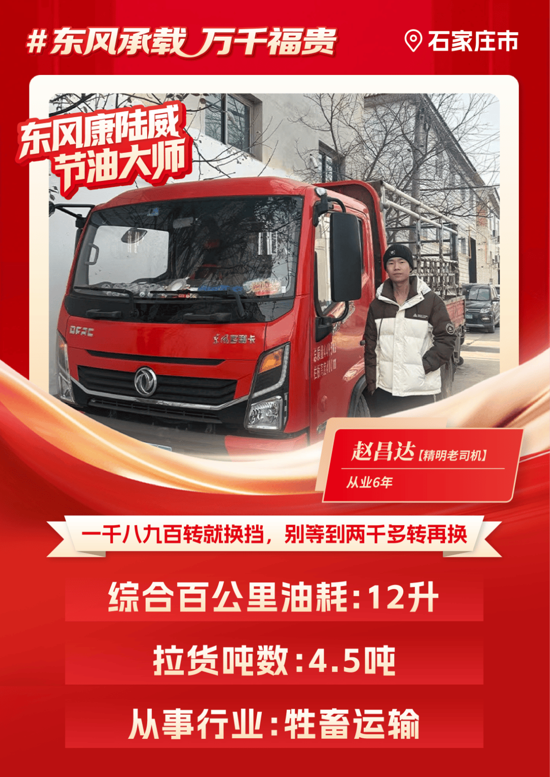 在河北石家庄,有一位从事牲畜运输生意的卡友赵昌达,他的购车选择和驾驶理念,在卡友圈里显得格外独特。当大多数人选购轻卡时,往往更关注货运能力或车内空间,而赵师傅却将“刹车性能”作为首要考量。这一与众不同的选择,不仅体现了他对安全的极致追求,也让他与东风多利卡康陆威栏板车结下了不解之缘。