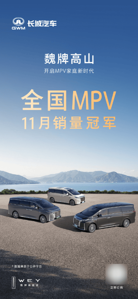近日,国内MPV市场迎来一则重磅消息:魏牌高山凭借出色表现,连续两个月登顶全国MPV销量榜首。数据显示,该车型11月销量达10416辆,成为当月唯一销量突破万辆的MPV产品,而此前10月其已以9928辆的成绩首次问鼎冠军宝座,市场热度持续攀升。