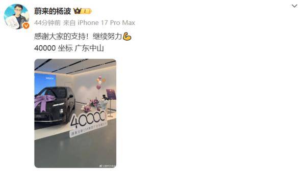蔚来汽车在高端纯电市场再传捷报,全新蔚来ES8累计交付量突破4万台大关。这一成绩由用户运营负责人杨波通过社交平台正式对外公布,标志着蔚来在40万元以上纯电SUV细分领域持续保持领先优势。