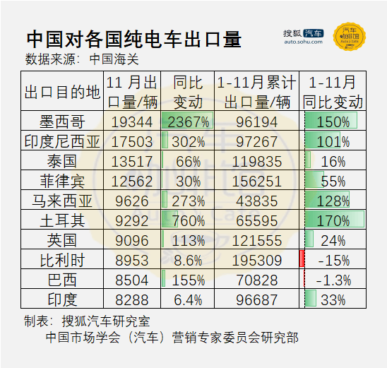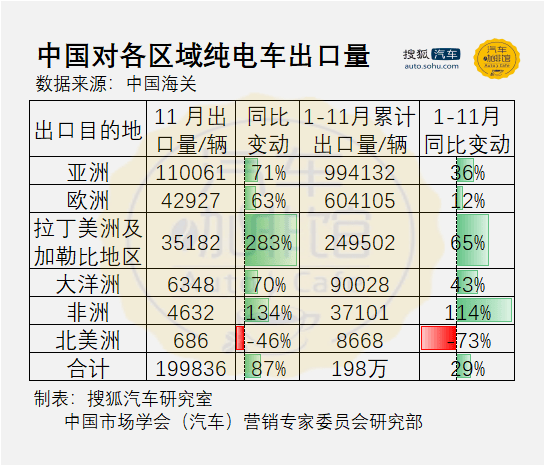 中国海关最新统计数据显示,我国纯电动乘用车出口持续保持强劲增长势头。11月单月出口量突破19.98万辆,较去年同期激增87%;今年前11个月累计出口量达198万辆,同比增长29%,展现出中国新能源汽车产业的全球竞争力。