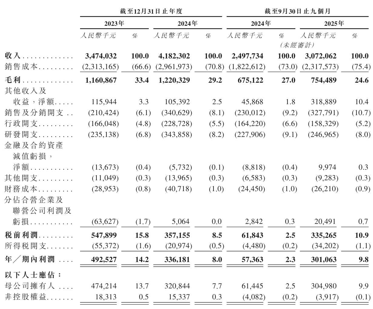 财务数据显示,星星充电近年营收规模持续扩大。2023年与2024年分别实现收入34.74亿元和41.82亿元,对应毛利11.61亿元和12.2亿元。尽管毛利率从33.4%微降至29.2%,但营收增长率仍保持两位数水平。值得注意的是,2025年前九个月公司营收已达30.72亿元,较上年同期的25亿元增长显著;毛利7.54亿元,同比增长11.7%;期内利润3亿元,同比增幅达423%,展现出强劲的盈利能力。