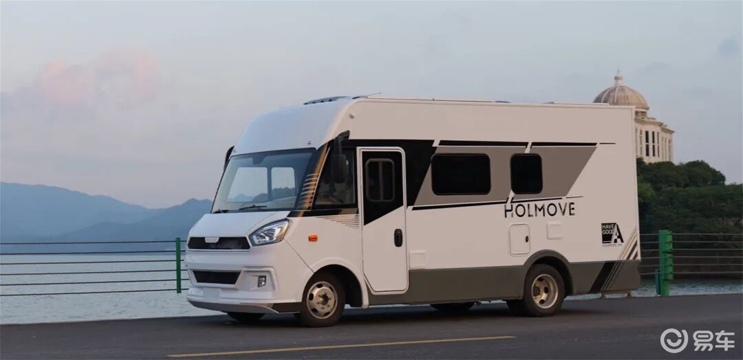 Ax6的外观设计兼具实用性与辨识度。分体式蜂窝进气格栅搭配“HOLMOVE”品牌标识,前脸造型精致且富有层次感。A柱黑色装饰条与侧后方方正的厢体形成视觉平衡,车尾LED贯穿尾灯(中间为装饰件)与大开口储物舱既提升了安全性,又强化了储物功能。车身尺寸为5995×2435×2890mm,高度低于常规C型房车,却通过2.4米宽体驾驶室与前后一致的车身设计,实现了“小车身大空间”的独特优势,同时满足蓝牌C照驾驶需求,核载4人且符合国六排放标准。