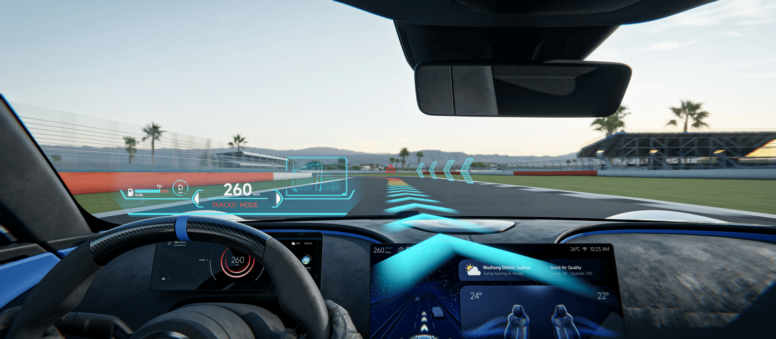 性能方面,STAR MATRIX预搭载4台1200V高压580kW永磁同步电机,动力表现备受期待。其核心亮点在于首创的AI Coach + AR Assistance Driving System。这一系统突破了传统驾驶辅助的局限,将AI决策与AR可视化技术深度融合,为驾驶者提供“看得见的智能”体验。通过实时数据投影与智能指导,该系统显著提升了驾驶安全性与便捷性。