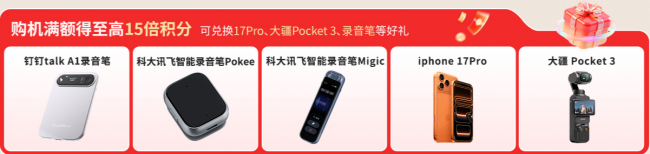 二、购机满额得至高 15 倍积分 可兑换 17Pro、大疆 Pocket3、录音笔等好礼