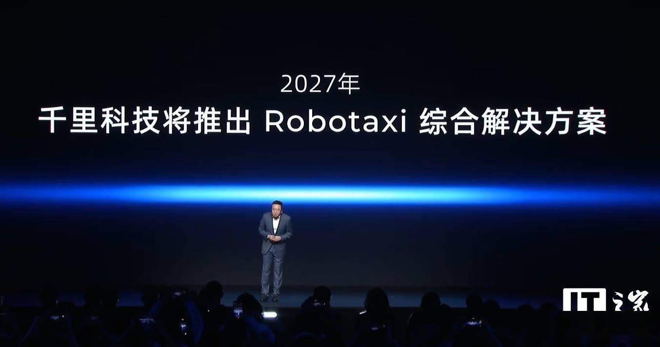赵明还公布了千里科技的长期战略目标:通过“具身智能”的方式,打造全方位的汽车解决方案。他宣布,千里科技将于2027年推出Robotaxi综合解决方案,并计划在2030年覆盖全球超过30万辆Robotaxi,展现了对未来出行市场的雄心壮志。