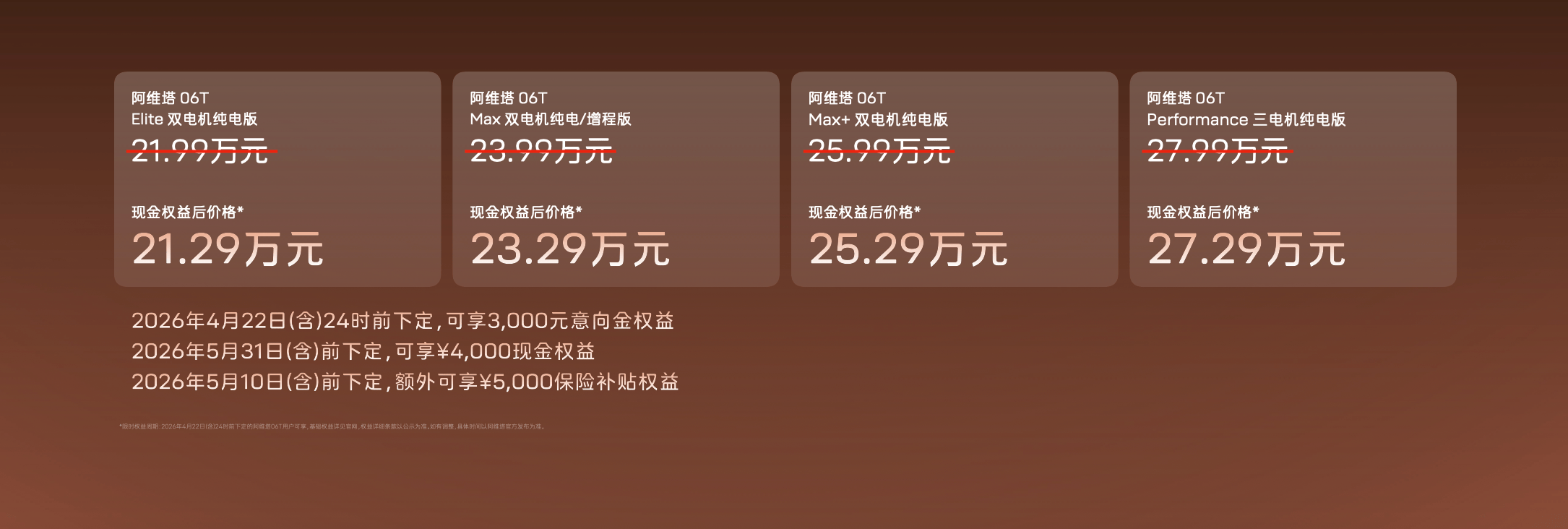 阿维塔06T近日正式登陆市场,推出五款不同配置车型,官方指导价区间为21.99万至27.99万元,叠加现金权益后实际支付价格下探至21.29万至27.29万元。作为长安汽车、华为与宁德时代三方联合打造的智能电动旅行车,新车提供纯电及增程式两种动力方案,并首次在同级车型中引入三电机四驱系统,满足多元化出行需求。
