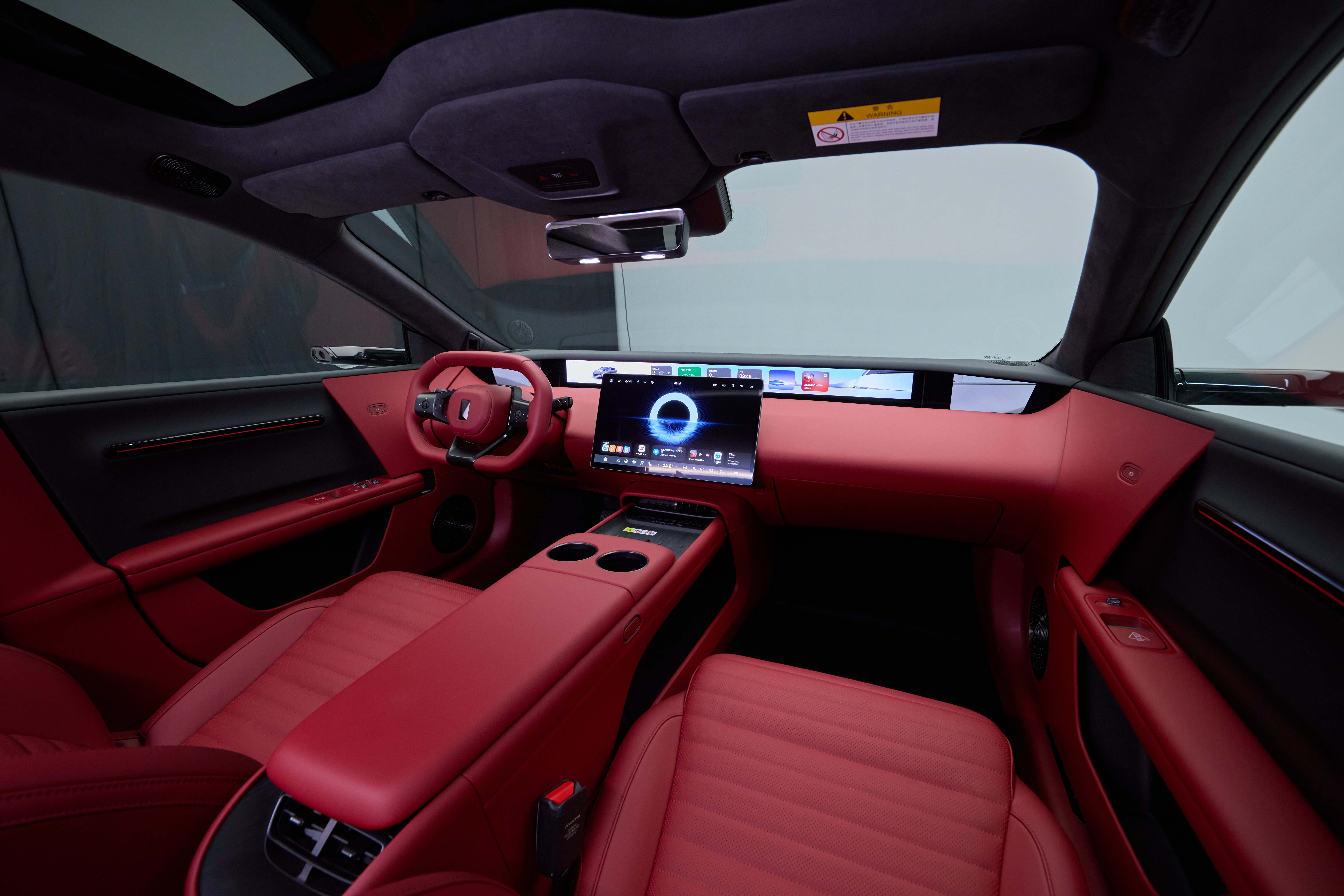 智能座舱搭载鸿蒙HarmonySpace 5系统,通过35.4英寸4K全景星环屏、15.6英寸悬浮中控屏及双6.7英寸高清外后视镜屏构建四屏联动生态。内置MoLA大模型支持AI车控、全场景智能协同及多模态语音交互,可实现跨设备信息无缝流转。内饰提供暮紫/烟白、深紫、岱红三种主题方案,环抱式座舱布局配合多色氛围灯系统,营造出沉浸式驾乘体验。