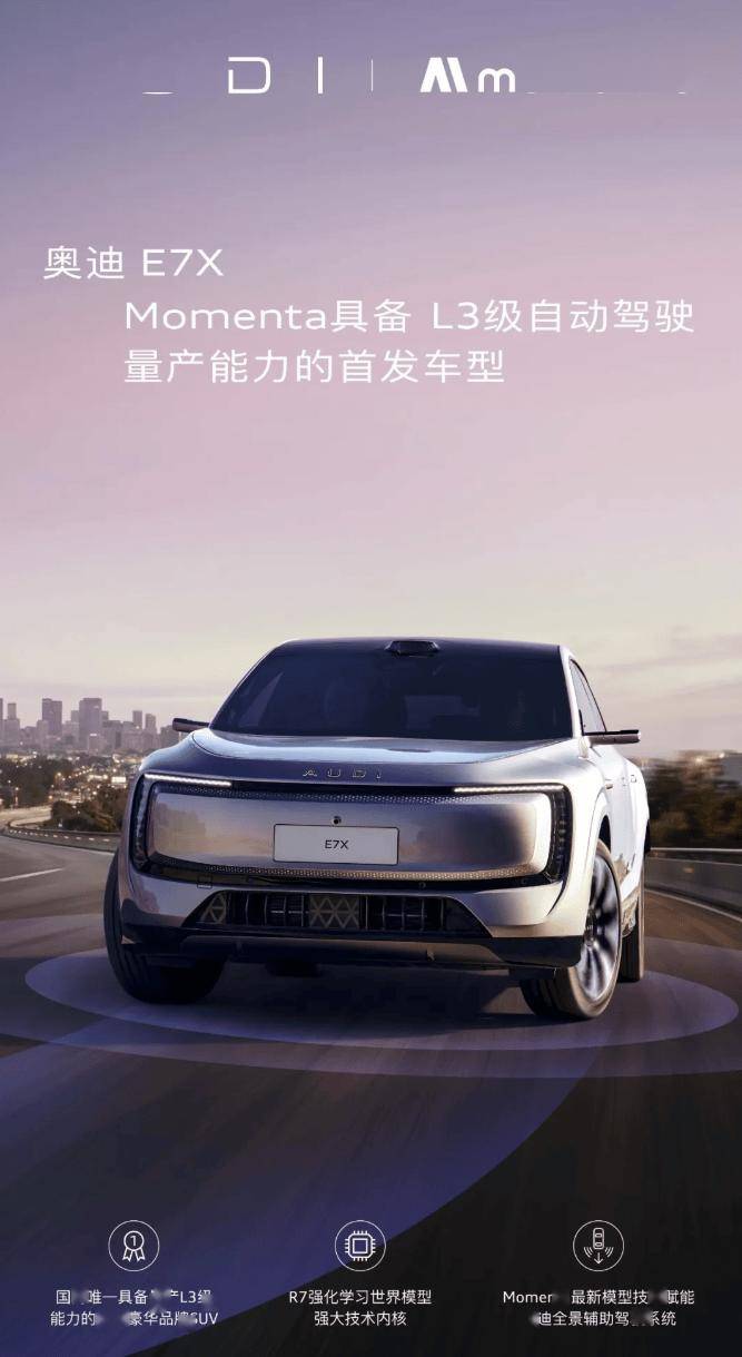 上汽奥迪品牌近日宣布,其全新打造的智慧性能旗舰SUV——奥迪E7X,将率先搭载L3级自动驾驶技术,成为奥迪品牌旗下首款实现该技术量产的车型。同时,该车也是Momenta L3级自动驾驶技术的首发合作车型,标志着双方在智能驾驶领域的深度合作迈入新阶段。
