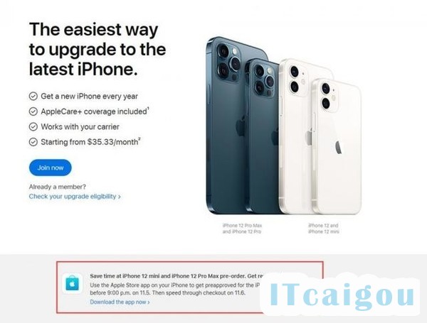 此外,从苹果美国官方显示的信息来看,iPhone 12 mini的升级计划起价为每月29.12美元,而iPhone 12 Pro Max则为每月45.79美元。当然,该服务统一会在国内推出,据称国内的预购时间为11月6日晚9点,届时国内用户同样可以通过Apple Store来进行选择,至于具体的价格方案,届时也将一并揭晓。