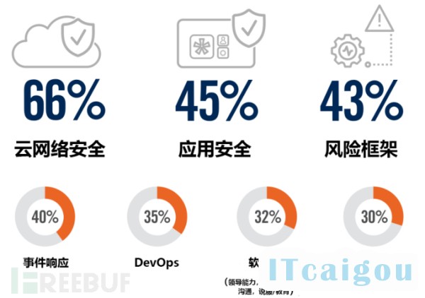 当谈到安全培训主题的优先级时,调查中的网络安全专家选择了云网络安全(66%)、应用安全(45%)和基于风险的框架(43%)作为培训和教育成功最有价值的主题。相较于去年,前两位没有变化,只是占比增加,但是第三位由事件响应变为基于风险的框架(去年为25%),还是那句话,刚到一个新环境,稍微适应之后各种问题开始显现,目前企业关心的就是云上安全整体解决方案,而这就需要一个适用于云上的安全风险框架。