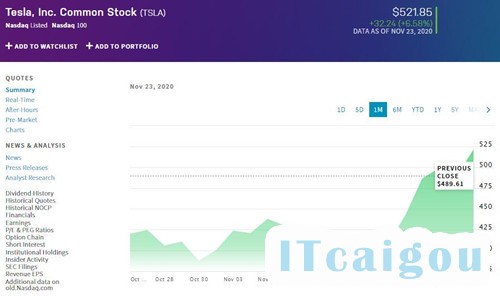 在周一盘后交易时间,特斯拉股价仍有上涨。盘后交易时间结束时,特斯拉股价为523.35美元,上涨1.5美元,按这一价格计算,特斯拉的市值为4960.84亿美元,距离5000亿美元仍有近40亿美元的差距。