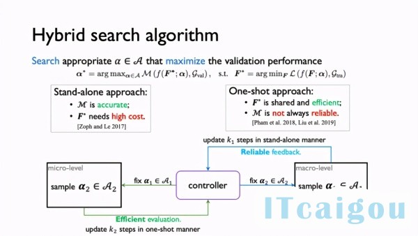 为了解决这些问题,该研究提出 Hybrid 搜索算法,在 macro-level 采用 stand-alone 方式,给定 α_2 ,从 Α_1 中采样不同的 α_1 ,训练模型参数至收敛,拿到对 α_1 的可靠评估;在 micro-level 采用 one-shot 方式,给定 α_1 ,从 Α_2 中采样不同的 α_2 ,同时让不同 α_2 对应的模型在超网络中共享参数,加速训练评估的过程。二者结合,即保证了搜索准确性,又保证了搜索效率。