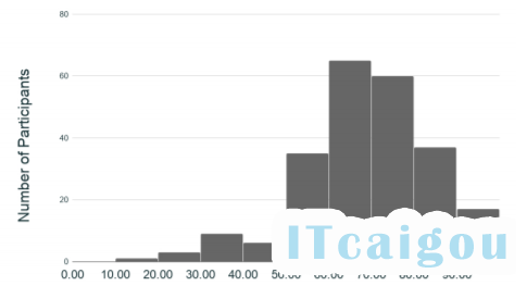 视觉图灵测试的分数分布,要求参与者判断艺术品是由人类还是计算机制作的(平均值= 70.5%)