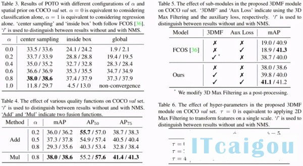 这就是研究者提出的 POTO 策略,它进一步地提升了无 NMS 下的性能,也侧面验证了 loss 并不一定是最好的 cost[3]。但从 Table 1 中也发现了,POTO 的性能依旧不能匹敌 one-to-many+NMS 组合。研究者认为问题出在两个方面: