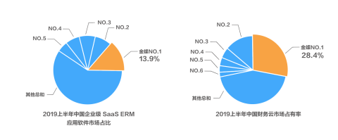 IDC《中国半年度企业级SaaS ERM应用软件市场跟踪报告》,金蝶在 2019 上半年SaaS ERM和SaaS财务云市场占比继续蝉联第一。