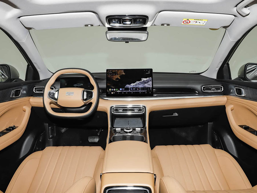 内饰空间提供澄湖映雪白、苏堤暖棕、烟雨墨黛三种配色方案。14.6英寸中控屏与10.25英寸液晶仪表组成双屏交互系统,8.9mm超窄边框设计搭配Flyme Auto智能座舱,内置7nm龙鹰一号芯片,配备16G内存和128G存储空间。座椅采用9层夹心设计的头等舱棉花糖0压座椅,软包覆盖率达80%,填充20mm记忆棉,前排座椅支持加热、通风和电动调节功能。