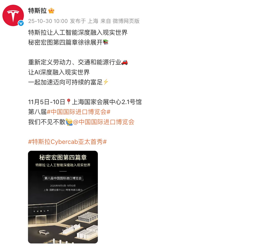 据可靠消息,特斯拉旗下Cybercab无人驾驶出租车即将在中国国际进口博览会期间完成亚太区首秀。这款专为自动驾驶运营设计的车型,计划以低于3万美元(约合人民币21.76万元)的价格进入市场,并预计于2026年初启动量产,主要面向共享出行领域。