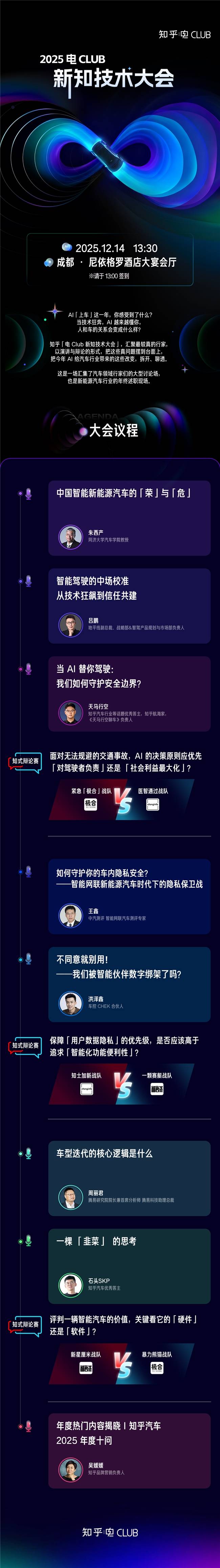 随着AI技术深度融入汽车产业,新能源汽车领域正经历前所未有的变革浪潮。这场技术狂飙不仅重塑了出行方式,更引发了关于数据安全、责任界定等核心议题的激烈讨论。12月中旬,知乎将在成都举办2025电Club新知技术大会,汇聚行业顶尖专家、车企代表与专业用户,共同探索技术革新与消费者信任的平衡之道。