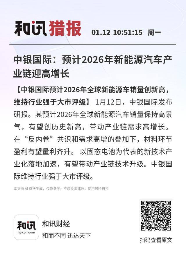 中银国际最新研究报告指出,全球新能源汽车市场将在2026年迎来新一轮增长高峰,预计全年销量将突破历史纪录。这一趋势将显著拉动产业链上下游企业的订单需求,为行业带来持续扩张动力。报告特别强调,在行业"反内卷"共识逐步形成与市场需求同步放大的双重作用下,动力电池材料环节有望实现量价齐升的良好局面。