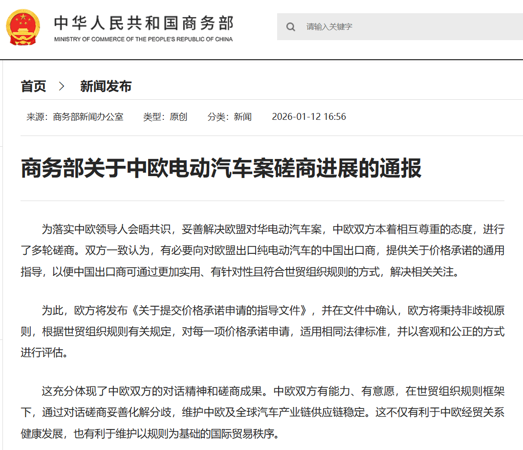 对于这一进展,欧盟中国商会发表声明称,妥善解决电动汽车案将显著提振市场信心,为中国电动汽车及相关产业链企业在欧投资与经营营造更加稳定、可预期的环境。商会还表示,这一举措有助于推动中欧电动汽车产业在市场拓展、技术创新等领域深化合作,为中欧乃至全球绿色转型和产业协同发展注入新的动力。